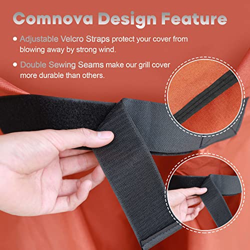 | Heavy Duty and Waterproof Cover | - Comnova bbq gas grill covers are made of 600D heavy-duty oxford cloth with waterproof PU coating And UV-resistant coating. Compared with PVC, our bbq covers are softer and more breathable. Our barbecue grill covers can protect your bbq grill from heavy rain, snow, straight sunshine, tear and fading. More importantly, PU coating is more environmentally friendly!