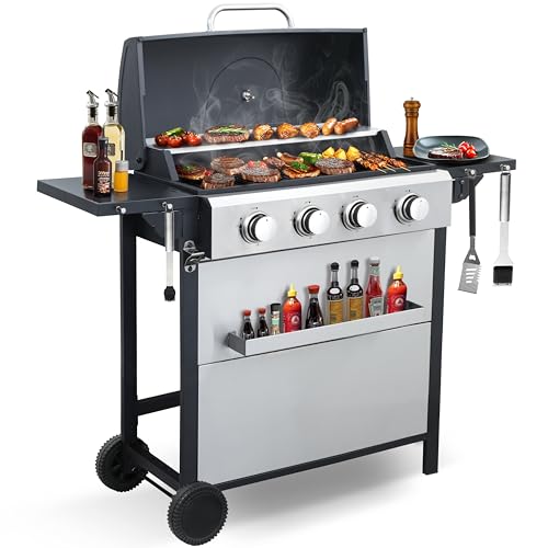 Pro-Grade Power with Precision Control – Four heavy-duty stainless-steel burners (10,000 BTU each) deliver restaurant-quality heat, while individual electronic ignition and porcelain flame tamers ensure even cooking. Adjust each zone for low-and-slow smoking or high-heat searing—just like a pitmaster.