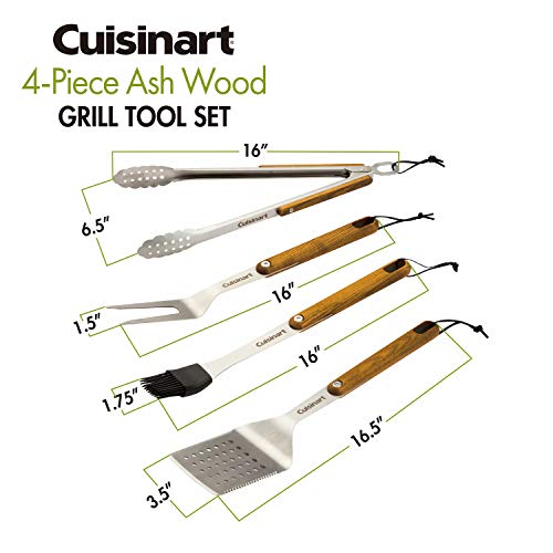 INCLUDES: The Cuisinart 4-Piece Ashwood Grill Tool Set includes a spatula, tongs, fork, and basting brush