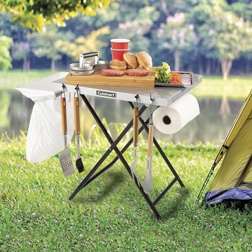 PREP TABLE & GRILL STAND: 24" x 20" table can be used as a food prep station while camping or tailgating and will also accommodate a variety of portable grills for use as a grill stand.