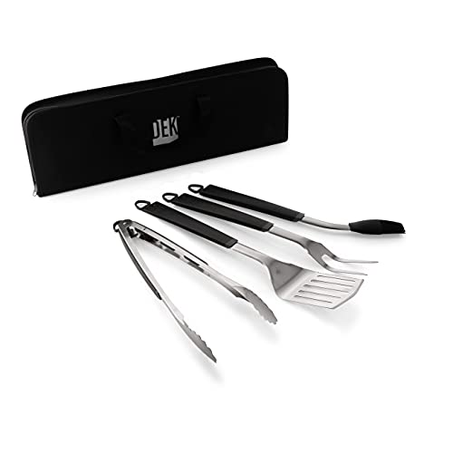 Spatula and tong are optimized sizes for both utility and comfort. Basting brush is constructed with an angled food-grade silicon head for added precision. Fork is constructed with tines designed for dexterity and control