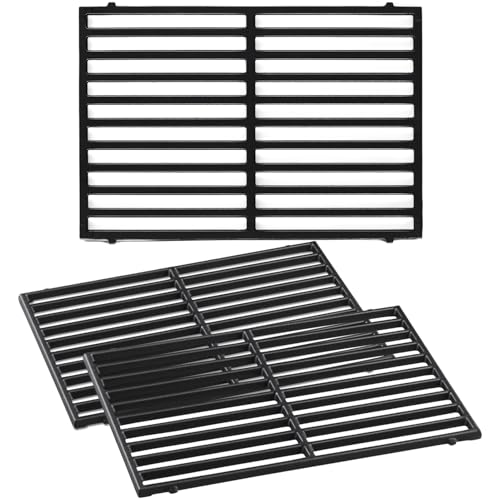 ??REVERSIBLE SURFAVCE AND BEAUTIFUL GRILL MARKS? It transfers direct heat to the food your grill, you can grill on either side of the grate. which creates a beautiful dark external layer.??DIMENSIONS AND MATERIALS? 3 pack 16 1/2 inch length matte enamel dyna glo cast Iron cooking grate)