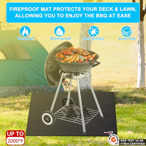 Protects your deck and lawn: Charcoal fires can cause irreparable damage to deck and lawn, a fireproof, heat-resistant fire pit mat is perfect for protecting your patio,lawn,composite decking,grass,yard,wood, cement, brick, and decorative stone.It keeps your outdoor floor patio or deck safe from bursting embers and dripping grease.Compared to traditional mats, DocSafe's grill mats are not only more portable and durable but will not tear, curl at the edges or crack due to heat.