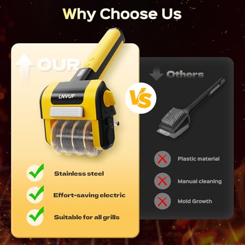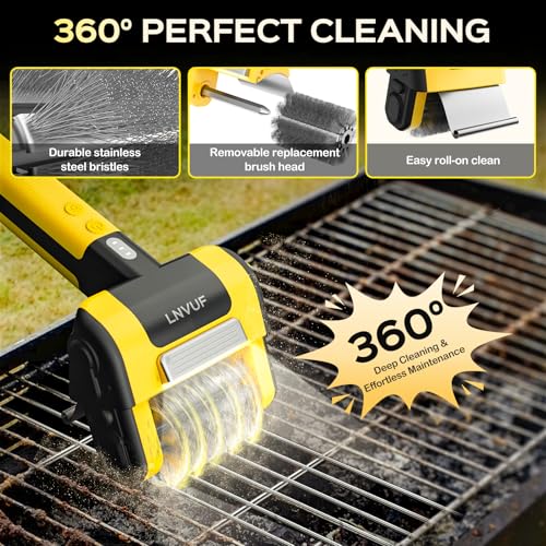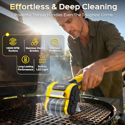Built-in LED Spotlight: The integrated LED light illuminates every nook and cranny of your grill, ensuring you can see and remove every speck of grease during nighttime cleanups. Ideal for cleaning after evening barbecues or for thorough deep cleaning, it guarantees your grill grate is perfectly clean with every use.