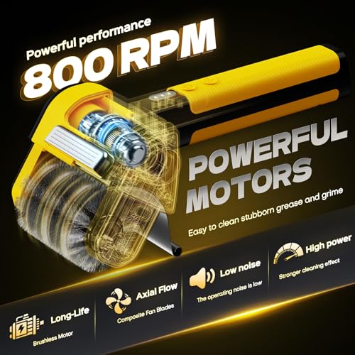Powerful Functionality And Easy Maintenance: This electric grill brush spinning at 800 RPM, driven by an Ultra-high speed motor. Its high-torque design blasts through stuck-on grime. The ultimate convenience comes from its fully removable brush head, which is completely dishwasher-safe for easy maintenance.