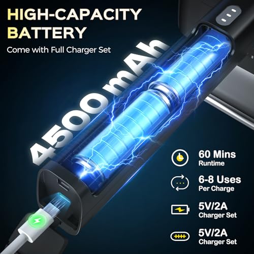 Longer Battery Life & Type-C Charging: Enjoy complete freedom of movement without being tethered by a cord. This rechargeable electric spin scrubber features a 4500mAh rechargeable battery, 7.4V for powerful scrubbing, offering up to 60 minutes of runtime.