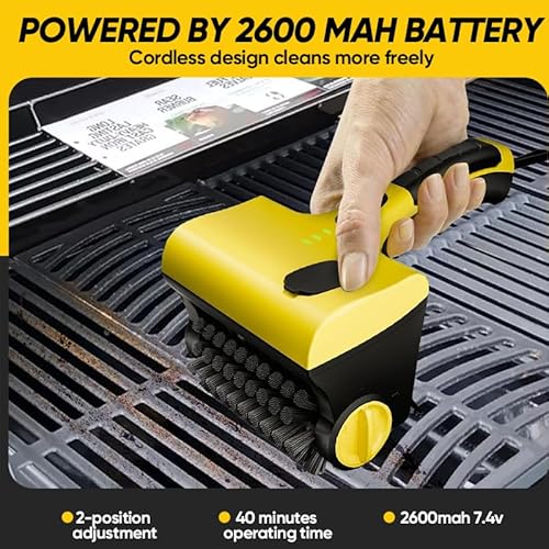 ?Long-lasting battery?2600mAh capacity outperforms standard cleaners with 60+ minutes runtime. Rapid 2-hour Type-C recharge sustains this power grill cleaner for outdoor grill through large BBQ sessions.
