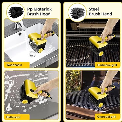 ?Efficient cleaning?700 RPM rotating heads remove grease 3x faster than manual scrubbing. The ultimate electric grill brush for outdoor grill handles cast iron and stainless steel effortlessly.