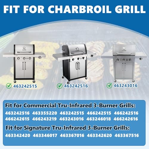 Perfect Fit: Replacement for Char-Broil Original Part Number: Stainless steel grill emitter plates: Char-Broil G466-2400-W1 CHRG466-2400-W1 & G466-2500-W1. Cast iron grill grate: G466-0025-W1A G474-0017-W1 G466-0025-W1. Replacement for charbroil grill replacement parts 463355220 463367016 466242516 466242615 466242616 463367516 466242515 466243219 grill infrared grates.