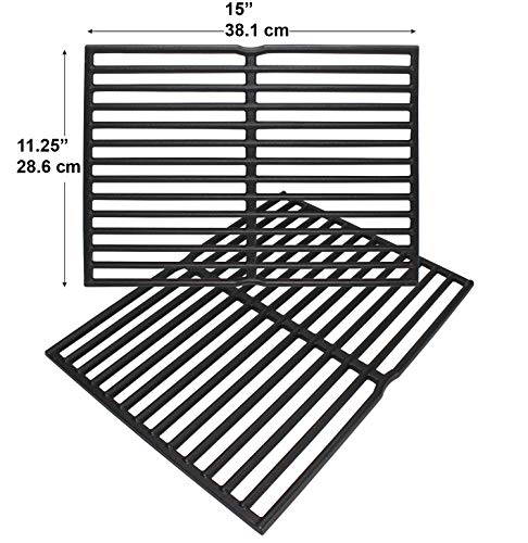 Enamel Cast Iron Cooking Grates for Weber Spirit 200 Series (Without Front-Mounted Control Panel), Spirit 500, Genesis Silver A Gas Grills (Dims:15 X 11 1/4" Each Unit, 15 X 22 1/2" for 2 Units)