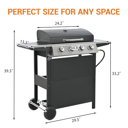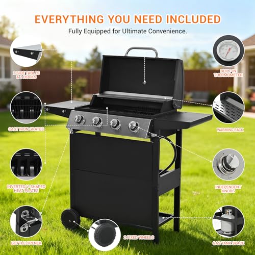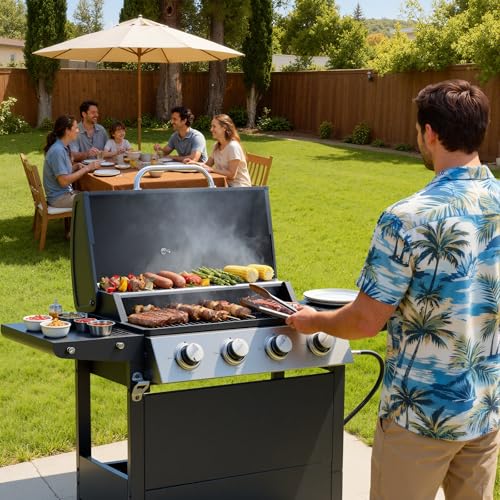 51000 BTU Professional-Grade Power - Dominate your grilling with a massive 51,000 BTU total output. Four 10,500 BTU main burners deliver fast, even heat for perfect searing, while the dedicated 9,000 BTU side burner gives you the flexibility to simmer sauces or sauté vegetables, completing your outdoor kitchen setup