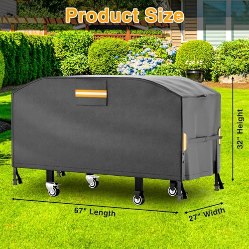 ?Griddle Cover Size and Fitment?The size of the Outdoor Waterproof Flat Top Gas Grill Cover is 67"L x 27"W x 30"H?Fits for Blackstone 36-inch griddle cooking stations, Fits for Weber 36-inch griddles, Fits for Royal Gourmet, Members Mark, Nexgrill and more brands 3-4 burner griddles or flat top grills;Does not fit for Blackstone 36”ProSeries Griddle;