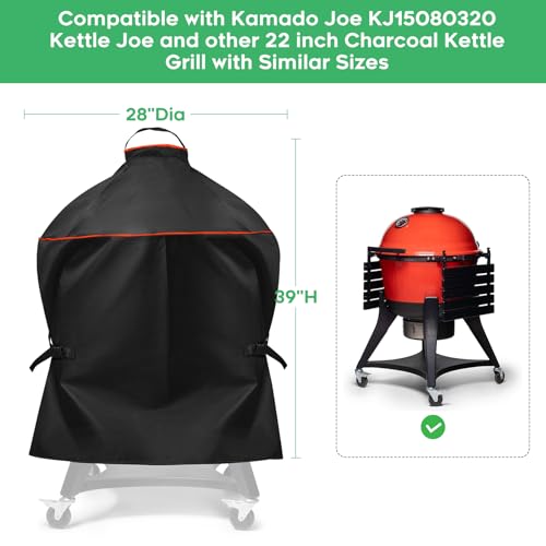 Heavy Duty 600D Polyester Grill Cover fit for Kamado Joe KJ15080320 Kettle Joe and other 22 inch Charcoal Kettle Grill with similar sizes, 28"Dia x 39"H