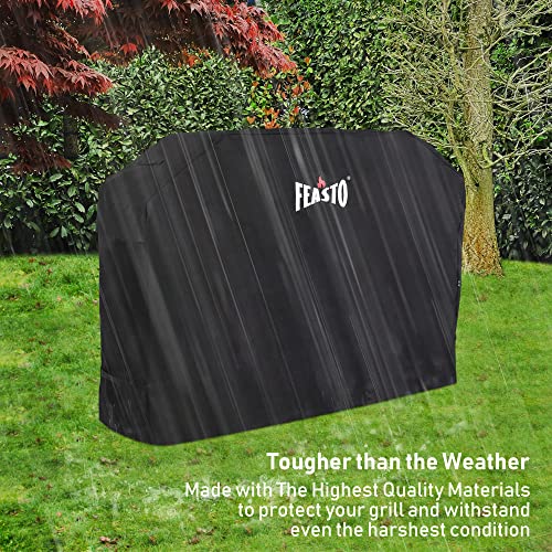 Feasto 4 Burner Gas Grill, Outdoor BBQ Grill with Side Table for Patio & Backyard Barbecue, Enameled Coated Chamber Body with Porcelain-Enameled Grates, Grilll Cover Included, 36,000 BTU, Black