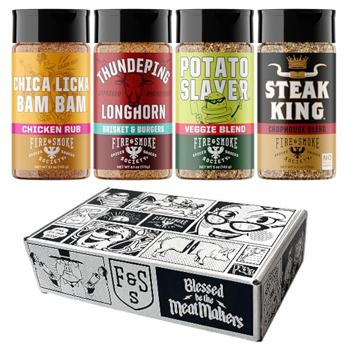 Value Bundle Variety Pack: Queue up the Dad jokes. The Fire & Smoke Society Meat & Potatoes grill seasoning set is your one stop gift solution, for the grill maestro in your family be that (Dad or Mom). These bbq seasonings and rubs are all you need for smoking and grilling pork, chicken, beef, fish, steak, and veggies. This premium meat seasoning kit has every grill seasoning your Dad, Grandad, Step-Dad, Crawdad or Doodad could ever need. The perfect grilling accessories, Christmas gifts men, dad gifts and christmas gifts for dad.