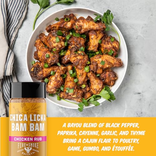 Chicken: A Bayou Blend: Chica Licka Bam Bam seasoning mix is a bayou blend of spices and seasonings including black pepper, paprika, cayenne, garlic salt, and thyme that brings a Cajun flair to poultry, game, gumbo, and étouffée. Chicken seasonings, chicken rubs and poultry seasonings are perfect on whole birds, chicken thighs, legs, chicken wings, smoked turkey and more.