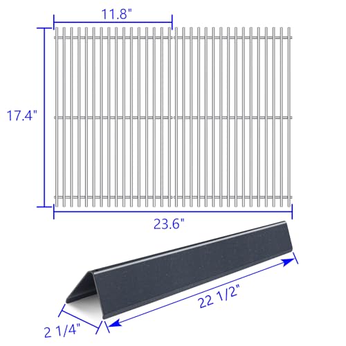 DIMENSION: Cooking grate dimension: 17.4" x 11.8" for each, 17.4" x 23.6" for total, Flavorizer Bars: L 22.5" x W 2.3" for 5 units