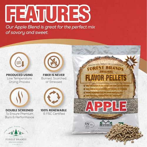 Forest Brands Apple Flavored Pellets, 100% Hardwood Grilling Pellets for Grill, Bake, Smoke, Roast, Braise, and BBQ, 20lb Bag.