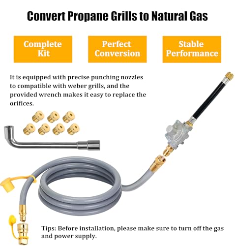 [ CONVERT PROPANE GRILLS to NATURAL GAS ] - This propane to natural gas conversion kit is designed for use with Weber grills, perfectly convert propane grills to natural gas. No longer worrying about running out and replace propane tanks frequently. After convert, it will still provides you with stable performance and better BBQ experience. Let you enjoy your barbeques to the fullest.