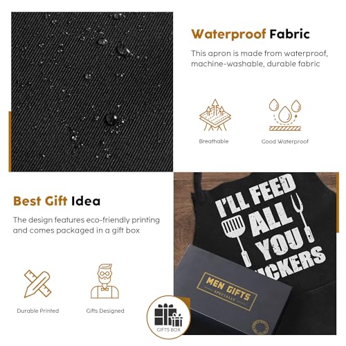 Funny Cooking Aprons for Men - Dad Gifts, Perfect Fathers Day, Birthday, Christmas Gifts for Men Dad Brother Boyfriend Husband, Unique Grilling Chef Apron for Men