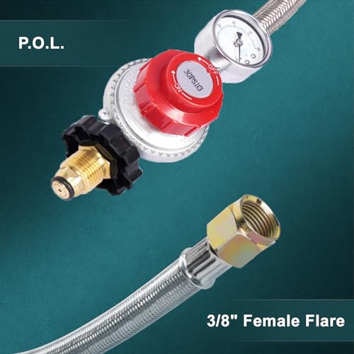 Perfect Fit: The 12 ft adjustable propane regulator with hose is great for turkey fryer, forge, burner, fire pit, smoker, heater, and more. Please note that it is only suitable for equipment power of 30 PSI
