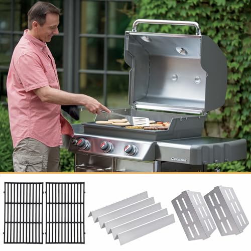 GasSaf 19.5 Grill Grates, 17.5 Flavorizer Bar and 13-1/4 Heat Deflectors for Weber Genesis 300, Genesis 310 320 330 and More Gas Grills with Front Control Panel, Grill Parts for Weber 7524 7620 7622