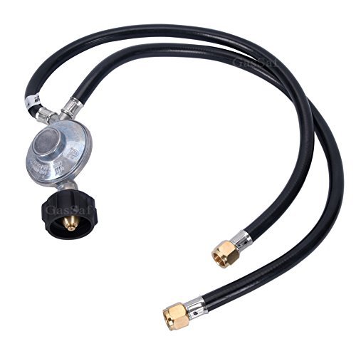 GASSAF 2 Feet Y-Splitter Low Pressure Propane Regulator Double Hose Outlet Kit with Two Hose for Type1 QCC1 Propane Tank, Most LP/LPG Gas Grill and Propane Appliance