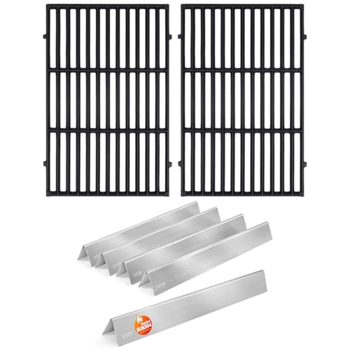 GasSaf 7638 Grill Grates: 17.5 x 11.9 inches for each, Set of 2 Pcs. 17.5 x 23.8 inch for 2 units.Materials: Cast Iron, retains heat superbly, heavy duty, non-stick, durable. After sale replacements, please check and compare the size of the original parts before ordering