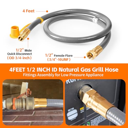 ?Flexible and Efficient?: Natural gas hose can be connected to a variety of low-pressure gas grills and fire pits. The 1/2-inch inner diameter design provides a stable and sufficient gas flow, ensuring efficient equipment performance to meet various needs