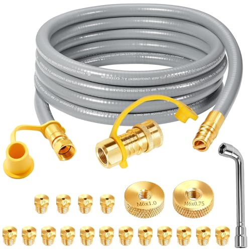?List of Products??In addition to a 10 ft 3/8 "gas hose, the kit comes with a 3/8" quick connection, 16 brass nozzles (see supplementary picture for nozzle size), 2 thread gauges and a 7 mm wrench for easy installation.