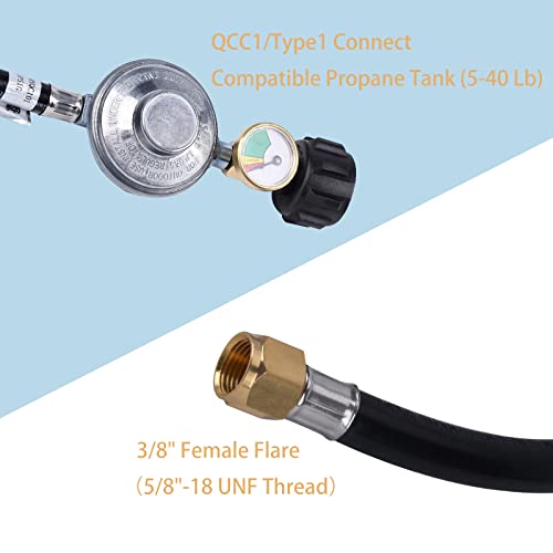GasSaf 6FT Propane Regulator with Hose, Gas Grill Regulator and Gauge for Most LP Gas Grill, Heater and Fire Pit Table