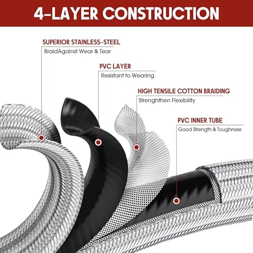 ADVANCED HOSE CONSTRUCTION - GasXpert strengthens its 1lb to 20lb propane tank adapter by fully coating its original 4-layer hoses of flame-retardant PVC with stainless-steel braid, enhancing the propane hose adapter’s resistance to wear, tear, weather and fire. Combining advantages of 3 different materials (flame-retardant PVC, stainless steel and high-tensile cotton), the propane hose adapter 1lb to 20lb with propane tank adapter boasts better flexibility, sturdiness and durability.
