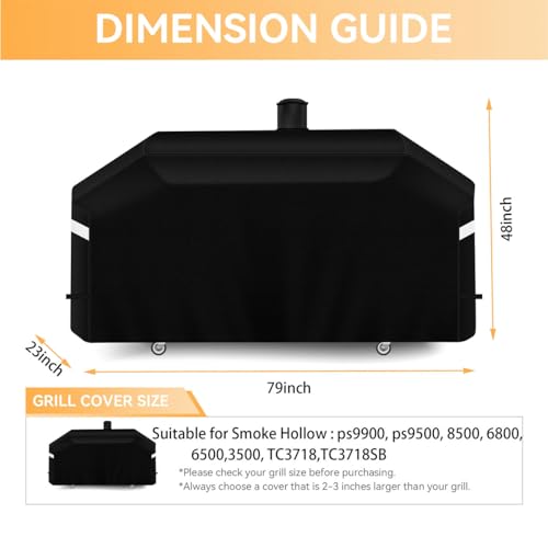 ?Dimension?- 79"W x 23"D x 46.5"H for Smoke Hollow 4 in 1 Combo Grill PS9900, Pit Boss Memphis Ultimate Grill, PS9900-SY18 47180T, DG1100S, PB73952 ; ?Heavy duty Material?- made of heavy duty 600D polyester oxford fabric that is durable and tear resistant.The PVC lined waterproof layer is made with an upgraded formula that makes the waterproof layer soft, wrinkle resistant and more durable than other similar products. Can keep your grill intact in a variety of environments.