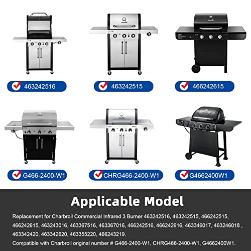 ?Replacement for Charbroil Commercial Infrared 3 Burner Grills?: 463242515, 463242516, 463243016, 463246018, 463346017, 463342620, 463346017, 463355220, 463367016, 463367516, 466242515, 466242516, 466242615, 466242616, 466243219. ?Orignal Part Numbers?: G466-2400-W1, CHRG466-2400-W1, G4662400W1