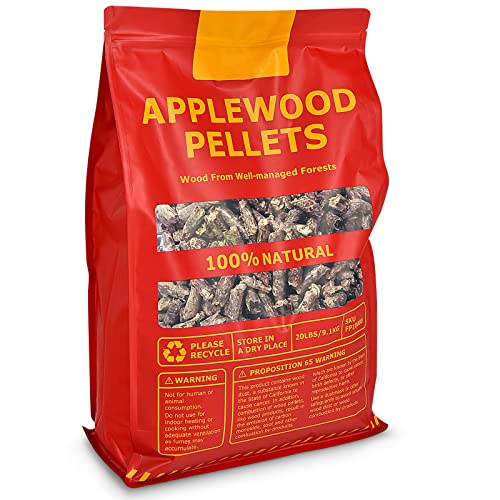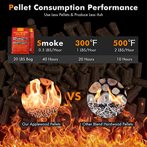 ?Outstanding Burning Performance?: Compared to other hardwood pellets and wood clips, our premium apple wood pellets are able to reach 500°F more quickly with fewer pellets. If you use it to smoke, the 20 lbs pellets can be burned for up to 40 hours or so (0.5 lbs per hour).