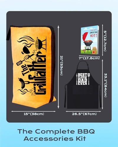 Giftaroo Dad Grilling Accessories Gifts Apron & BBQ Blanket for Resting Meat, Unique Christmas, Fathers Day & Birthday Outdoor Barbecue Smoker BBQ Bag Gifts for Men Who Want Nothing