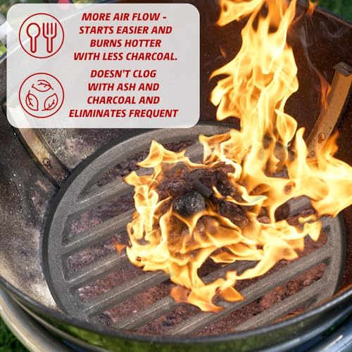 Excellent Temperature Control: the creative design of this bottom fire grate offers the fastest and easiest way to reach and maintain high or low grill temperature; It holds the coals out of the vent, thus your coals will breathe better and produce a more consistent heat, burn hotter with less charcoal by accelerating air flow