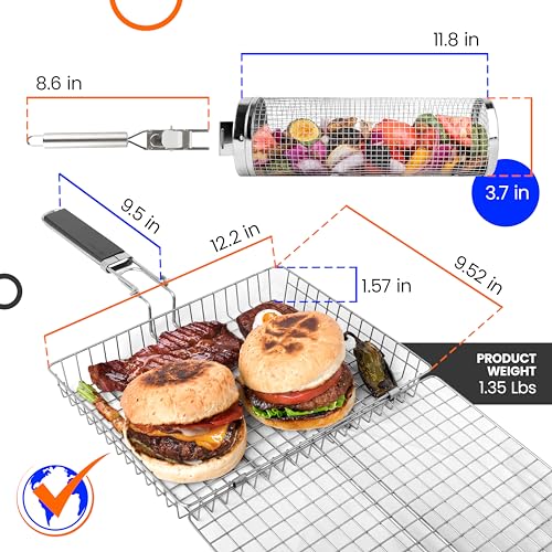 PERFECT GIFT: Grilling baskets for outdoor grilling make great camping cooking gifts for men / women, ideal grill gifts, and essential outdoor camping accessories.The person who receives this grill fish basket for grilling or grill baskets for outdoor grill vegetables will love to use them. They make fantastic grill gifts for men and for grill tray enthusiasts!