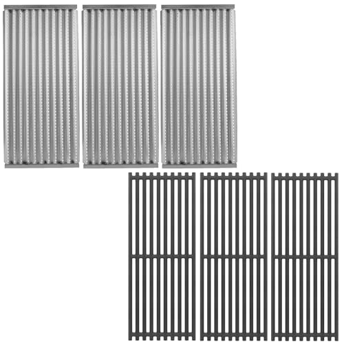 ???Quality Materials?Grill emitter plates is made of high-quality stamped stainless steel with many holes in the emitter plate surface, maintaining even heat and preventing flare-ups; BBQ cooking grate is made of high-quality cast iron cooking grates, high heat retention and cook food fast, delivers even heat distribution