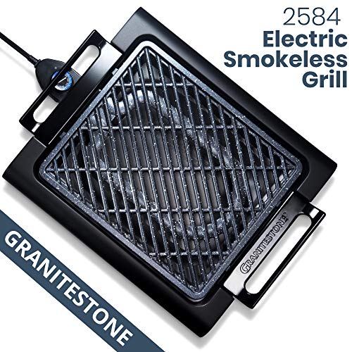 Granitestone Indoor Electric Smoke-Less Grill with Cool-touch handles and adjustable Temperature Dial, Nonstick, PFOA-Free, Black 16 x 14" As Seen On TV
