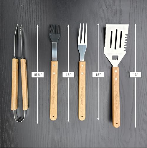 Stylish & Durable: Made from premium materials, this engraved grill tool set combines functionality with style. The sturdy construction means it can withstand all outdoor cooking adventures, from backyard gatherings to tailgating parties.