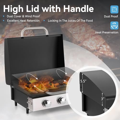 PROTECTIVE HOOD: Griddle with Hood not only maintains the cleanliness of your griddle and shields its top from adverse weather conditions but also traps heat effectively during cooking