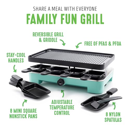 GRILL INCLUDES: 8 mini square nonstick pans, 8 nylon spatulas.