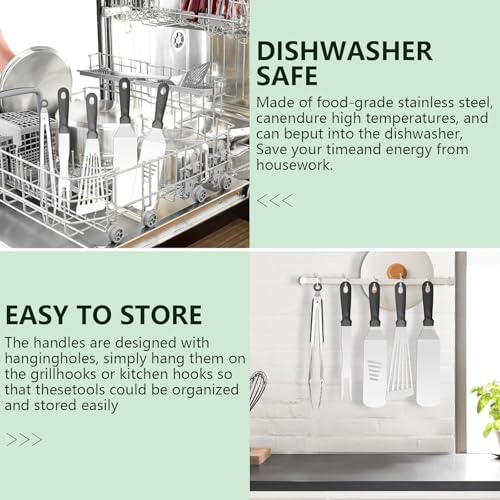 ?EASY TO CARRY AND STORAGE?Our griddle tool kit is dishwasher safe, or easily wash by hand with water and soap, so you can enjoy a delicious barbecue with your family without hassle. Each tool can be placed in an orderly manner and better protected in the compact storage bag and a exquesite gift box. Convenient hangers are provided for easy storage and food grade grill tools are easily cleaned with warm, soapy water.