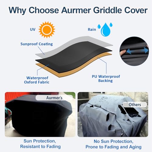 600D UV&Tear Resistant Material: Griddle cover for Blackstone are made of high-density, high tenacity, tear-resistant, UV resistant upgraded Oxford fabric with PVC coating on the inside, that is twice as thick as regular materials and outlasts 210D, 420D and PE materials and resistant to strong sun rays. Keep your grill looking new and durable