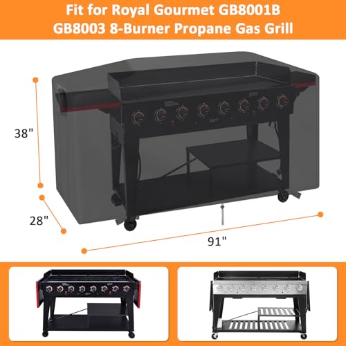 Special Design: The 91" x 28" x 38" grill cover is especially suitable for Royal Gourmet GB8003 8-Burner Gas Grill. Note:please measure the size of the grill carefully before ordering to ensure it can be used