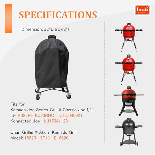 Perfect Fit - Compatible with the Kamado Joe Classic Joe I,II and III grills;Kamado Joe Konnected Joe, Kamado Joe Pellet Joe, Large Big Green Egg, and other round 18-inch charcoal grills,for Char-Griller Akorn Kamado 6755 Grill Cover.