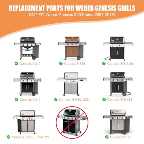 Compatibility: Grill replacement parts fits Weber Genesis II 300 Series grills (model years 2017-current), Genesis ii E-310, Genesis ii E-315, Genesis ii E-325, Genesis ii E-330, Genesis ii E-335, Genesis ii E-345. Genesis ii S-310, Genesis ii s-315, Genesis ii S-325, Genesis ii S-335, Genesis ii S-345. Genesis ii SE-310, Genesis ii SE-315, Genesis ii SE-330, Genesis ii SE-335, Genesis ii LX E-340, Genesis ii LX S-340, Genesis ii LX CSE-340, Genesis ii LX CSS-340, Weber 66095 66802 66032 66795.