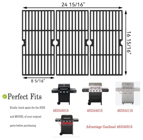 ?Fits for Char-broil replacement gas2coal grill parts 463340516 463370516, 463336818 463341918 463336818 463370519 463370518 466370516. ?Fits for Charbroil 3 Burner??Grill grates replacement parts for Charbroil Red 3 burner grill parts 466250511 463250511 463250510 466250509 463250509. ?Fits for charbroil performance parts 3 burner grills 463371116 463371116-P1 463371316 463370015 463470109 463672416
