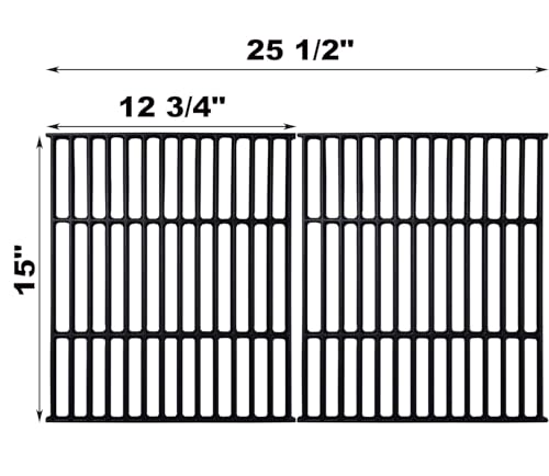 ? ?DIMENSION? Come with 2pcs cast iron broil king grill grates , the size are 15" L x 12 3/4" W for each, a total 15" L x 25 1/2" W broil king grates.??PLEASE NOTE?Please compare with the size and original part number of grill before order to find the most suitable broil king gas grill replacement parts broil king accessories huntington cast iron grates grill replacement parts .